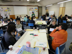 第2部(14:20~15:45)は「ワールドカフェ」という手法を用いたグループワークで「次世代の巻込みにむけて」をテーマに、参加者同士の理解を深めました。