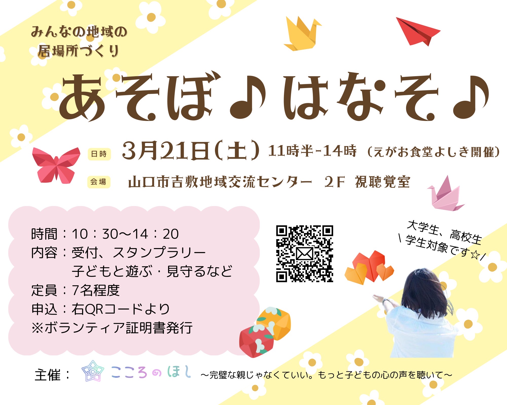 3月21日(土)あそぼ♪はなそ♪ボランティア募集